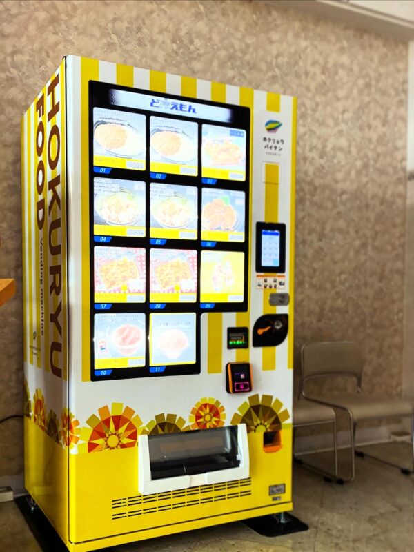 北竜町_冷凍自販機2026.03.24 『道の駅サンフラワー北竜』に 新たに冷凍食品の自販機が設置されました!サンフラワー北竜に立ち寄れば、 道中小腹が減ったそんなあなたの強い味方です。 横にはレンジも完備。 その場で熱々のご当地グルメ 『ひまわりポークチャーシューまん』なんて いかがでしょう。